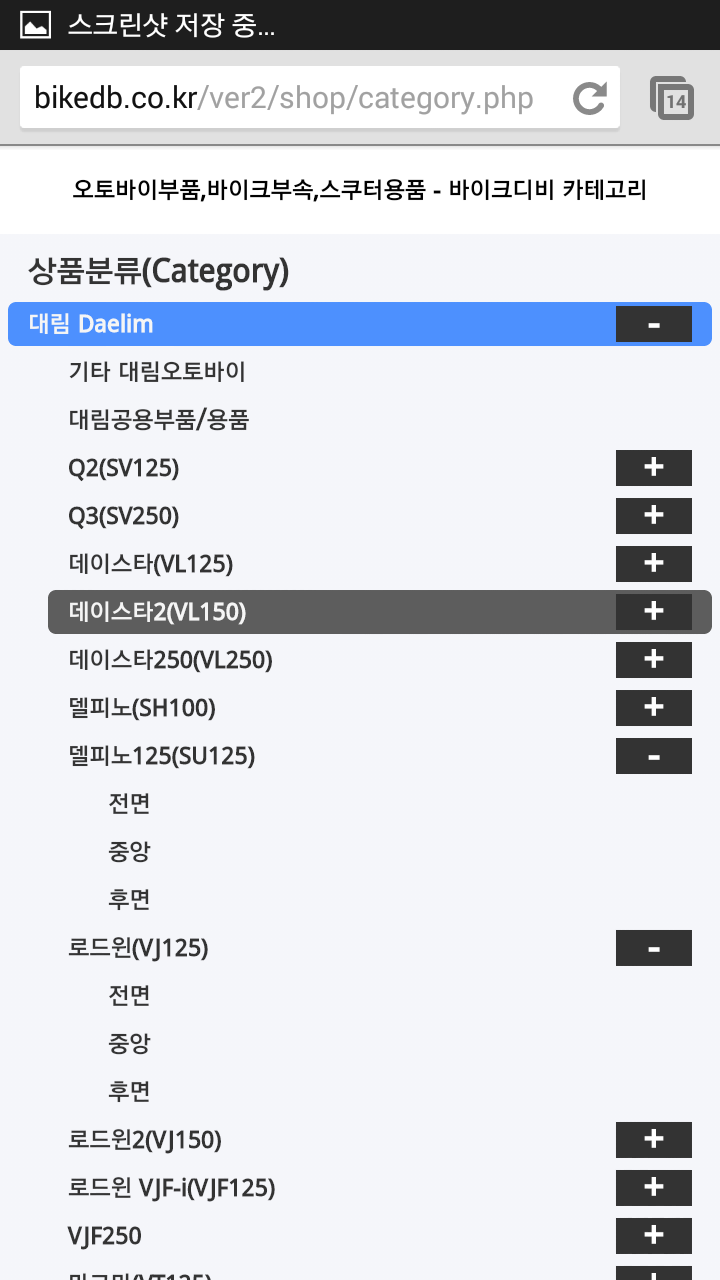 '분류명'을 클릭하면 분류페이지로 넘어가고 '+' 또는 '-' 를 클릭하면 하위 메뉴가 나타났다 사라집니다.