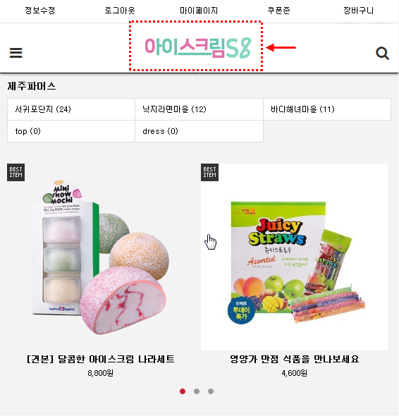 레이아웃 영카트 쇼핑몰 상단 로고 자동관리본문