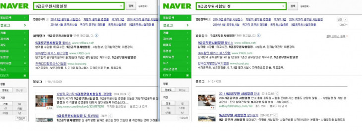 블로그, 카페 같은 섹션에서 잡히는 것이 다르네요.