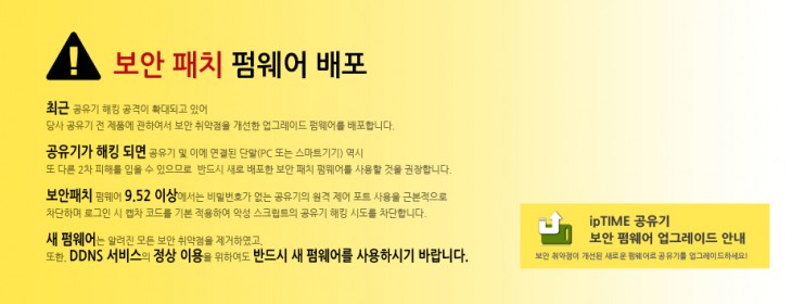 IPTIME 뿐 아니라 공유기는 대부분 비번 안걸면 해킹당한다고 합니다.