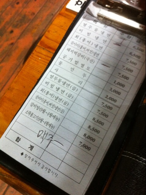 돼지 떡갈비와 열무 물냉면, 비빔냉면을 주문하고 한숨 돌리고 있는데... 이런 메뉴도 있네요.