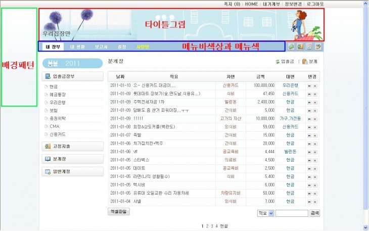 (운영하고 있는 무료가계부 사이트인데 (http://www.magictoday.co.kr) 여기에 오셔서 화면중앙의 데모 (일반성인 / 동호회 / 어린이 / 아파트) 아이콘을 눌러 보시면 어떤 무슨 뜻인지 이해가 가실듯.....)