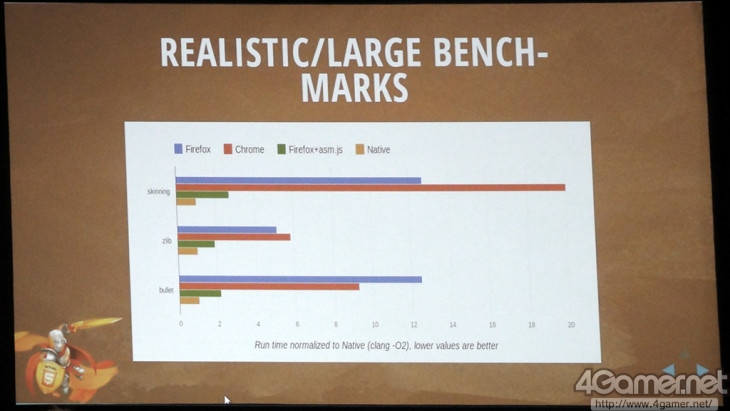 그래프는 네이티브가 PC 실제 코드, 초록색부분이 파이어폭스 최신 버젼에서 HTML5로 코딩된 버젼...