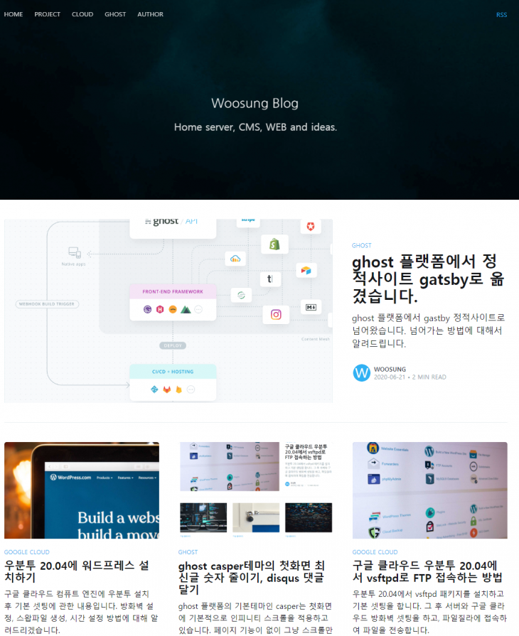 제가 한달 전 쯤에 ghost 라는 플랫폼으로 홈페이지를 만들었다고 했었는데요.