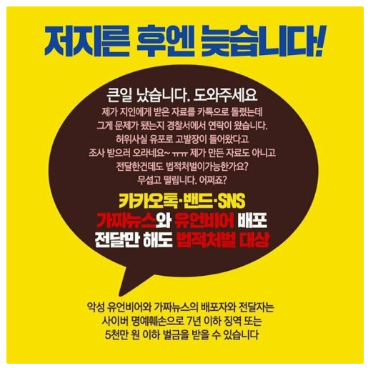 제가 아파트 수백명에 있는 채팅방에 속해 있는데, 갑작스럽게 태극기, 집회,, 반정부,, 이런 이슈들로 링크나 허위 사실 유포하는 경우가 있어 가끔 이 이미지 전송해 줍니다.