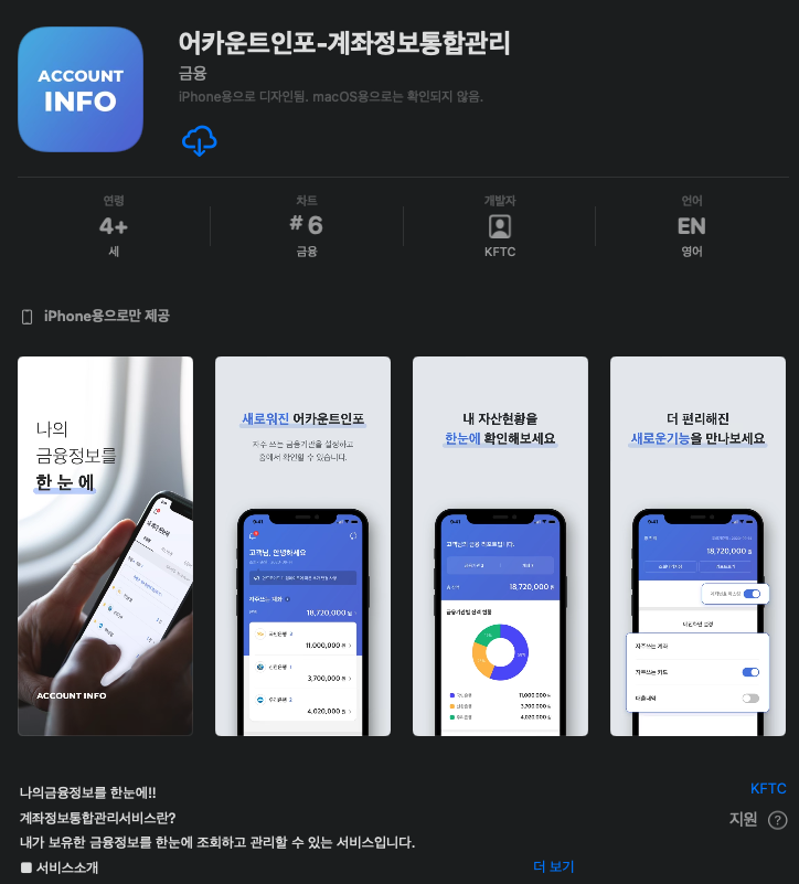 KTFC 금융결제원 에서 배포하는 어카운트인포 ( Account Info )를 설치해봤습니다
