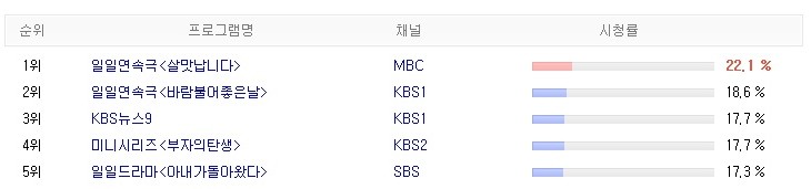 KBS1, KBS2, MBC, SBS, EBS 5개 채널의 프로그램 기준입니다.