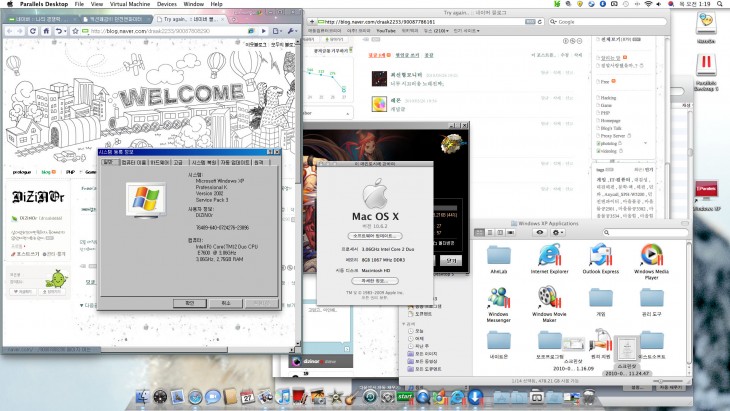 반대 입니다. 맥 os 에서 xp 를 같이 사용합니다 ^^;;