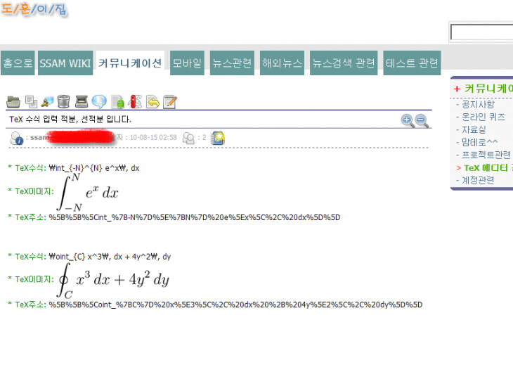 잠 안 오시는 분들 TeX 게시판스킨 테스트 좀 부탁 드립니다.