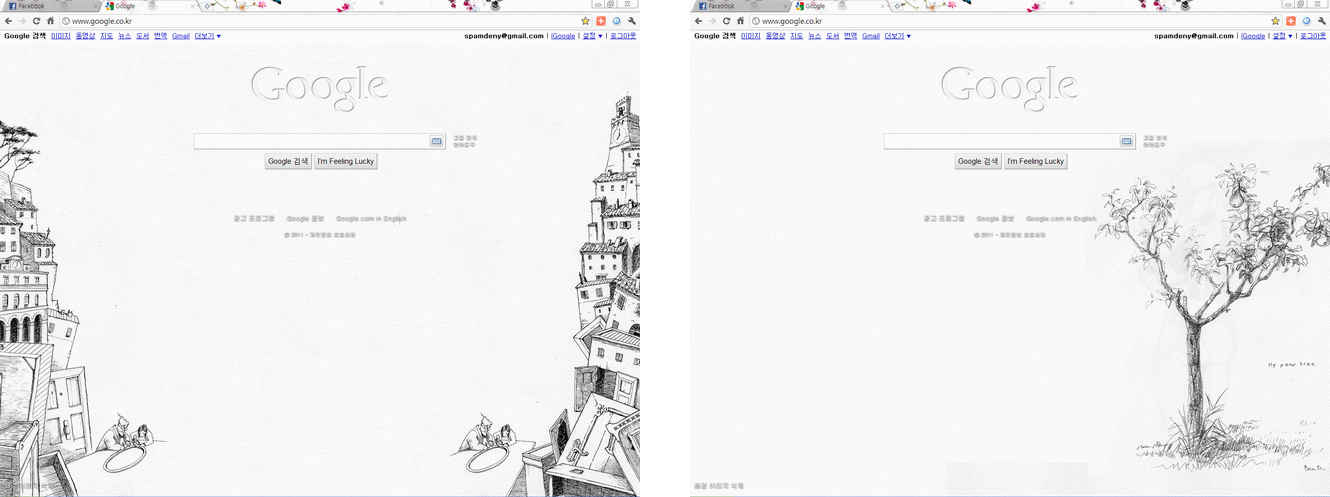 브라우저 첫 화면을 구글 배경 이미지를 이용해서 꾸며봤습니다.^^ 정보