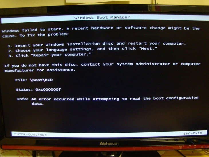 컴이 다운되서 다시 시작하면 첨부와 같은 화면이 나옵니다.그리고는 부팅 안됩니다.