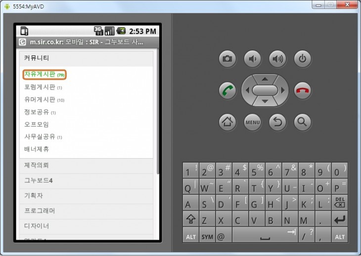 안드로이드 에물레이터에서 모바일 페이지 확인