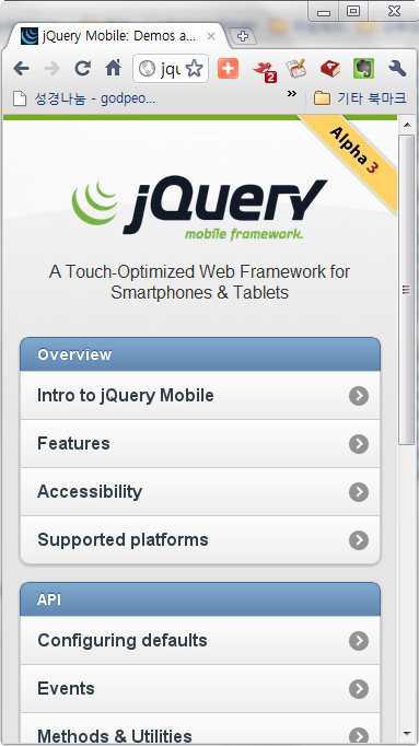 얼마전에야 jQuery 에도 모바일 페이지가 있다는 것을 알게 되었습니다.