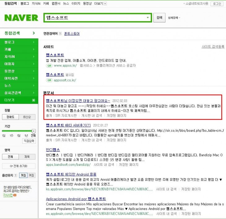 네이버에서 "앱스거시기" 검색해보았습니다 ㅡㅡㅋ 정보
