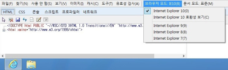 익스플로러에서 키보드의 F12 번 -> 개발자 도구 -> 익스플로러 버전을 낮은 것으로 선택 후 시도해 봅니다.
