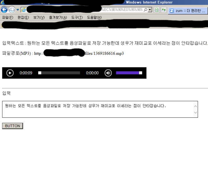 일단 컨버팅해서 저장 까지는 가능한데 아라비아 숫자 인식을 못 하고 글자수 제한과 쌓여지는 mp3파일 삭제 등등 문제가 많아보이네요. 이거 G4s프로젝으로 쓸만한데 한번 건의해 보세요. 아이디어가 너무 좋네요.