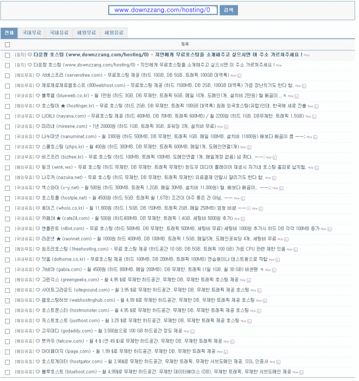 국내 해외 무료 호스팅 사이트 총정리 정보