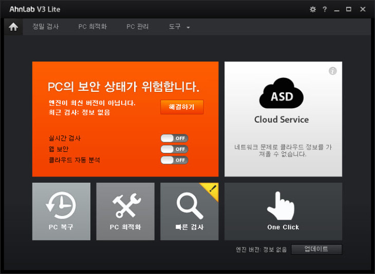 자주 바이러스로 인해 작동이 안되더니 알약이나 v3 업글했군요~![]()