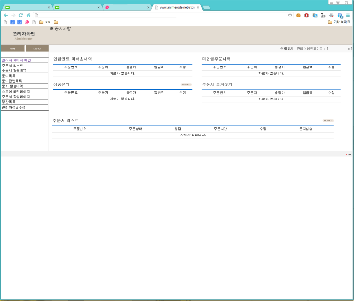 아는분이 부탁하셔셔 관리자페이지를 만들고있는데요~