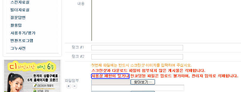 이것은 현재 스킨 자료실의 자료 업로드 폼에 위치한 안내문과는 그 성격이 판이한 것(엄청나게 다른 것)입니다.