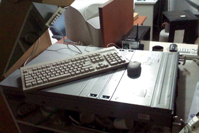 ↓ 삼실 이전하면서 책상이 부족해(이사하면서 뽀개져서ㅠ) 걍 아무데나 올려놓은 서버 모습