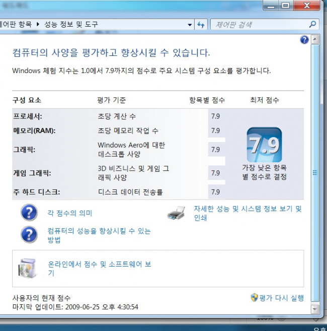 집에서쓰는 메인컴으로 windows7 점수 정보