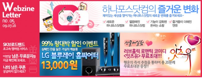 hanafos.com 이 글씨체 하고 아래쪽에 SK브로드밴드, 남은 무료문자, 나의남은쿠폰