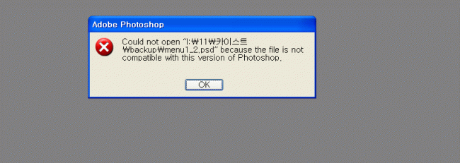포토샵 파일이 안 열리는 경우로 파일을 저장시 불완전한 상태로 저장이 될 경우 파일이 깨져서 안 열리는 경우도 있습니다.