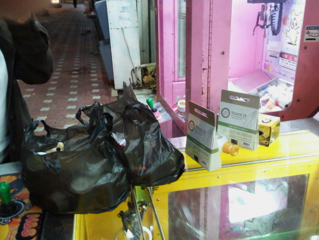 앞에 편의점에 봉투 두개 얻어와서 다 담았습니다.
