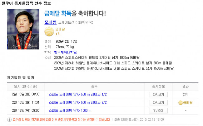 모태범 금메달이네요~ 오랜만에 접속했어요. 정보