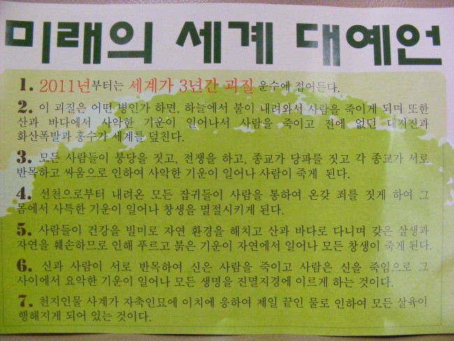얼추 틀린 예언들은 아닌데요..2012년에 지구멸망한다니까,,,그 전에 온갖 일이 일어날테고,,^^