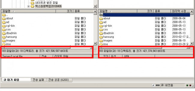 FTP로 받아서 보면 이렇게 같은 파일 수에 같은 폴더인데 용량은 왜 늘어나져서 받아질까요?