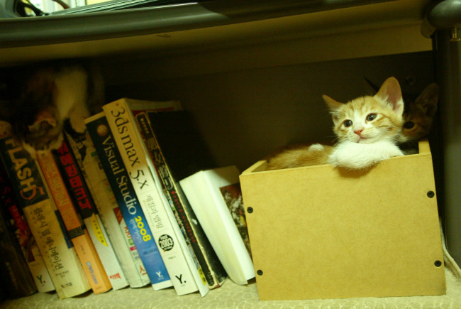정답 : 네 마리가 있~습~니~다~. 박스 안에 등짝만 보이는 녀석까지~