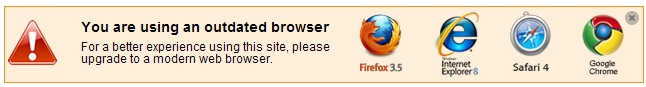 그래서 홈페이지 상단에 ie6일 경우 경고창(안내창)이 나오도록 했습니다.