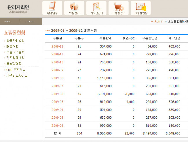 제가 운영하는 쇼핑몰 매출 현황입니다.