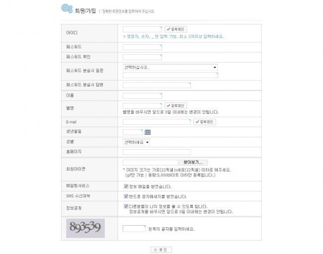 아래그림과 같이 회원가입시 전체화면으로 나오네요...서브메뉴