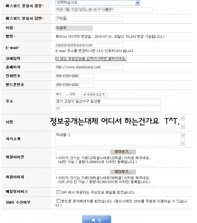 정보공개 설정은 회원정보수정에서 하실 수 있습니다.