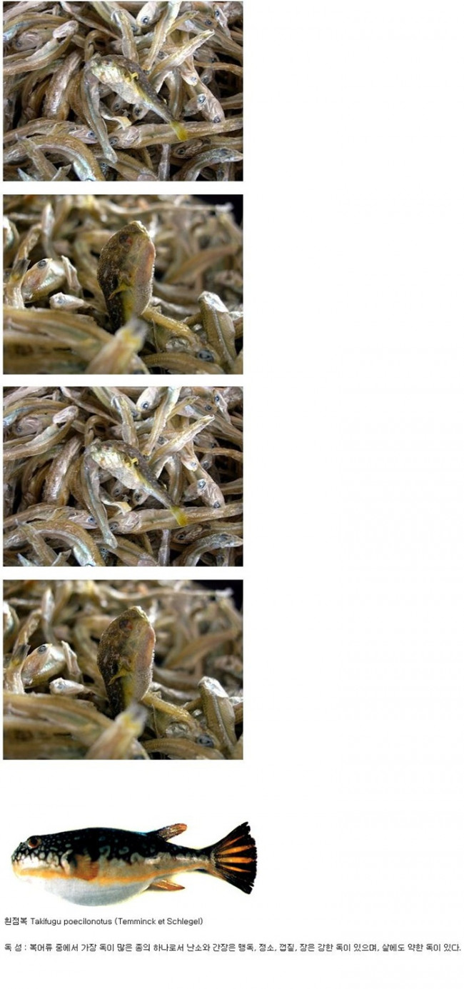 기사 아닙니다 >.< 멸치말린거에 복어가 나온 황당한 유머입니다 >.<