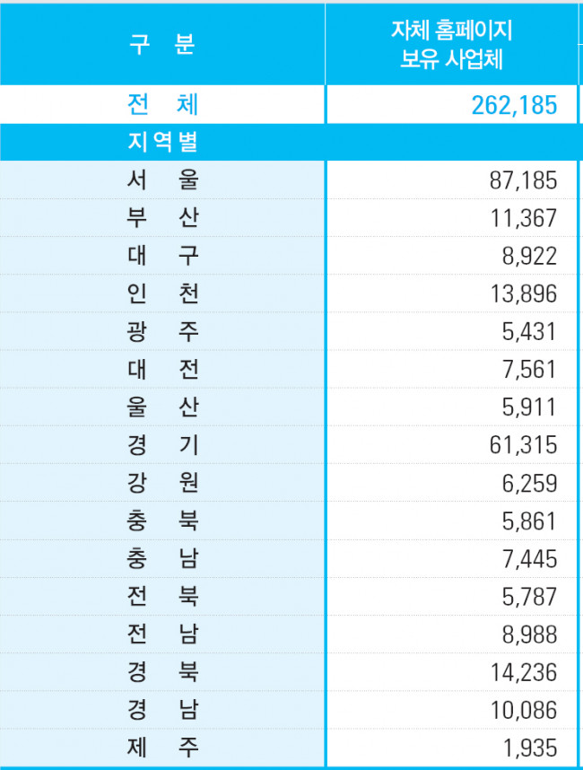 사업체가 보유한 홈페이지가 262,185개 군요