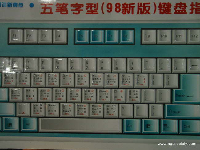 타이핑을 많이 하는 전문직 중국인들은 한자의 획과 부수를 나열한 또 다른 자판을 이용한다. 자판을 최대 다섯번 눌러 글자 하나가 구성되므로 오필자형(五筆字型)이라고 한다. 속도가 빠르지만 익히기 어려워 일반인은 못한다.