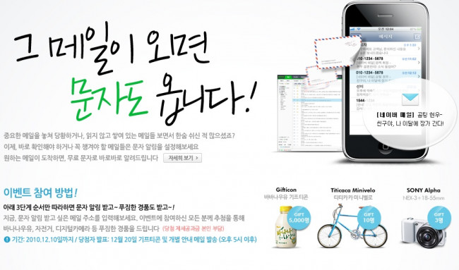 지금, 푸짐한 경품이 함께하는 네이버메일 문자 알림 설정 이벤트에 참여해보세요