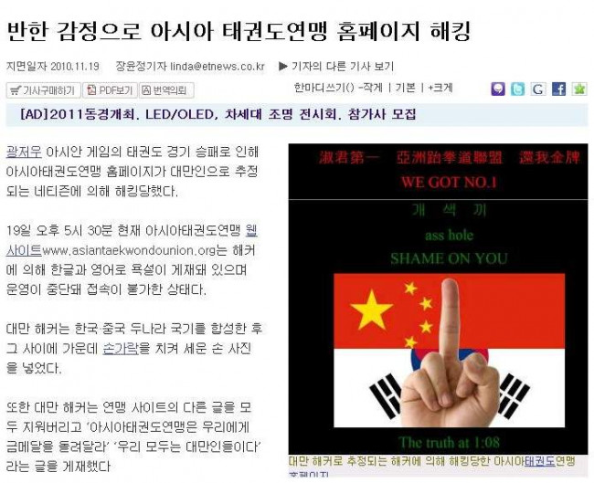대만 반한감정으로인해 아시아태권도연맹 홈페이지 해킹 정보