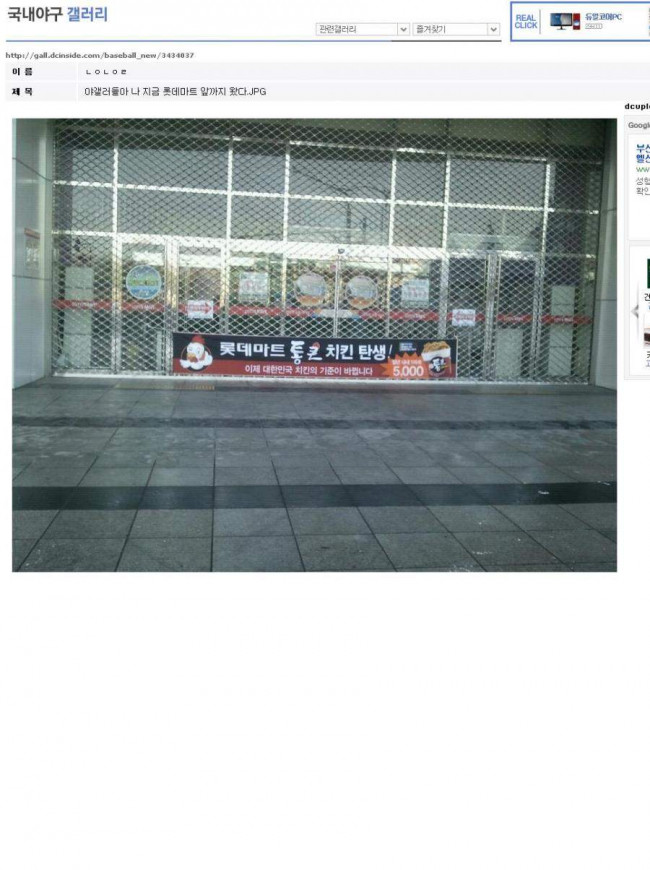 상황설명 : 자신이 롯데마트 치킨을 먹으러 1빠로 왔다고 인증샷을찍음,