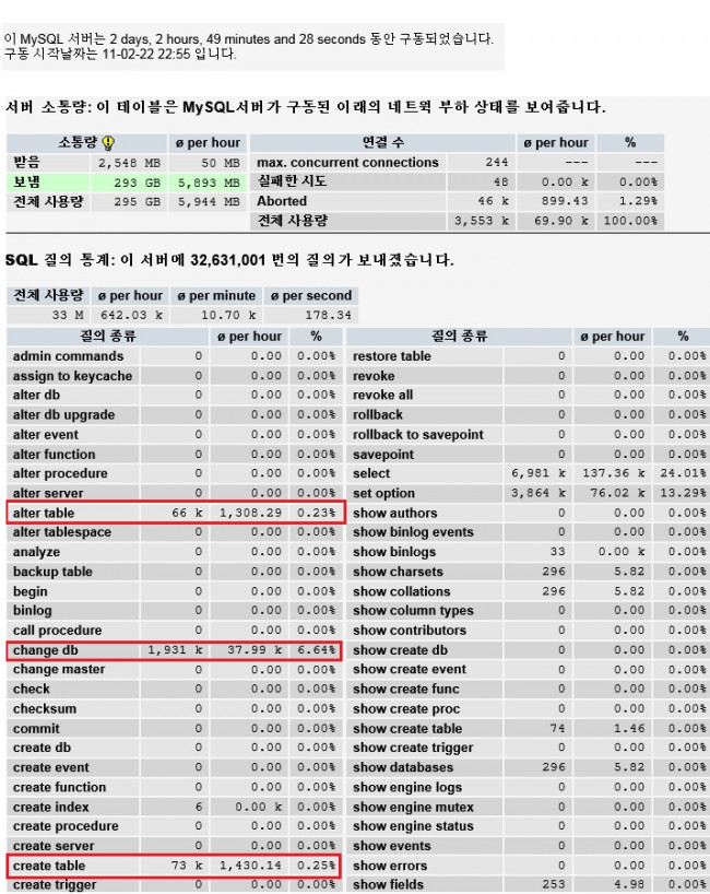 쓰레기 쿼리가 너무 많이 발생하는데요.. 정보 쓰레기 쿼리가 너무 많이 발생하는데요.. 아갈갤러리 자기소개 아이디로 검색 회원게시물 자기소개 아이디로 검색 회원게시물 2011.02.25 01:53:50 조회 1,536 댓글 0 이전 게시글 다음 게시글 검색목록 목록 본문 MYSQL 프로세서를 재시작하고 2일후에 확인해봤는데 불필요한 쿼리가 너무 많이 요청되는것같습니다..테이블 생성은 1시간에 1430, 디비 교체 요청은 무려 37.99k 인데요..이게 그누보드 내부 소스에서 지속적으로 요청되는건지 아니면 해킹시도 같은건지..이런걸 막는 방법좀 조언해주시면 감사합니다.. 댓글 전체 이전 게시글 다음 게시글 검색목록 목록