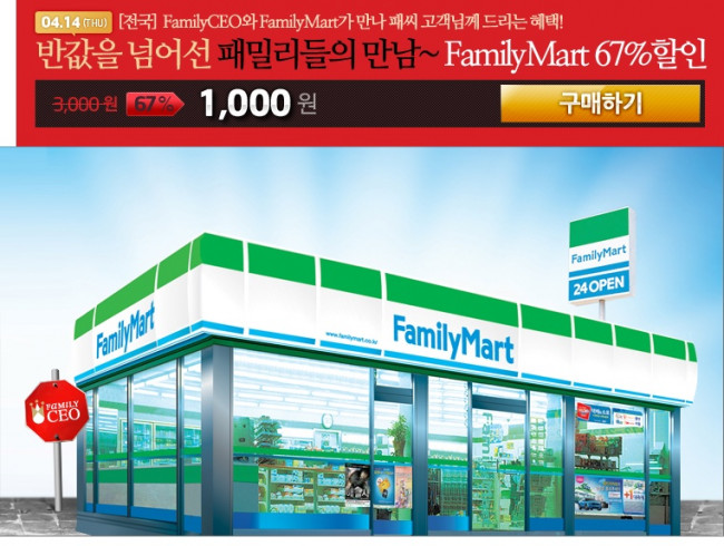 패밀리마트 3천원권 천원에 파내요 웅진에서 만든 소셜커머스인듯 정보