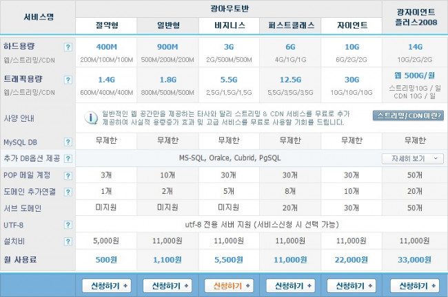 호스팅 용도에 따라서 어떤식으로 구입하는건가요? 정보