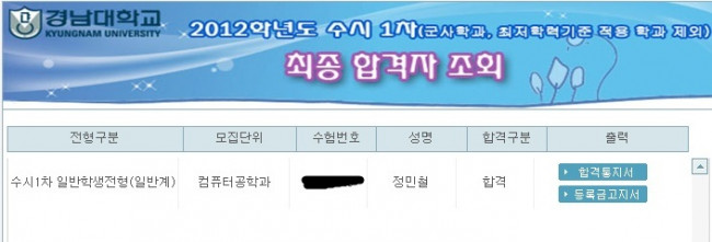 경남대 최종 합격 발표.....ㅠ_ㅠ