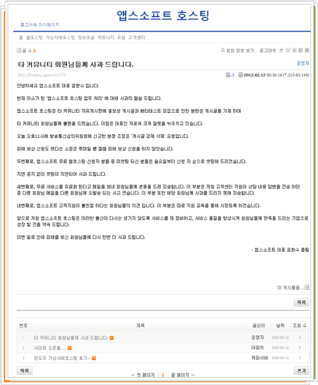 앱스 사과글 캡쳐떠서 가져왔습니다.