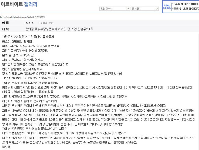 일단 신고를 하는게 웃긴게 바로 노동부로 전화했다는게 뒷통수죠 -ㅁ-