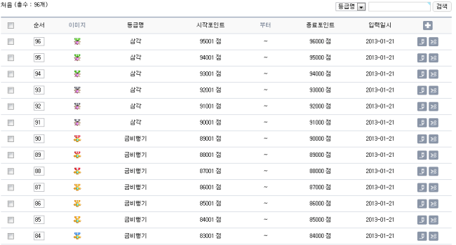 순서는 auto잡아놓구..등급명은 단위마다 지정해놓고 시작포인트 천이상 연산해놓고 부와왁